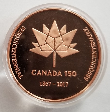 The second medal was released in 2017 to commemorate Canada’s sesquicentennial. The Canada 150 copper medals are sold out.
